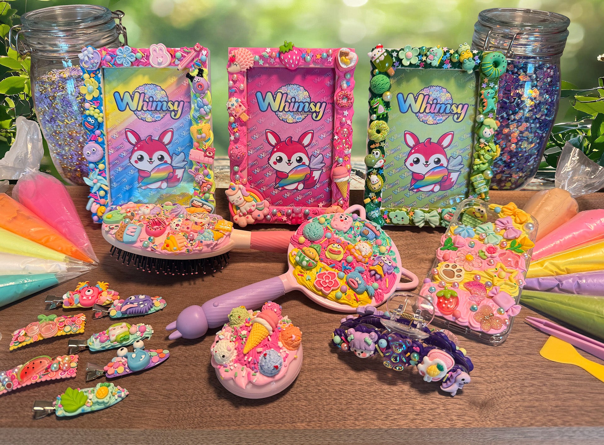 Whimsy DIY is family owned craft business that brings the magic of Decoden to your fingertips! We have kits for everyone, whether your're a beginner or a bling loving pro that will allow you to create dreamy, over-the-top decorated phone cases, accessories, and DIY kits filled with whimsy! With our Whimsy Whips, our curated collection of charms, and sprinkles and beads galore, we help you create personalized, kawaii-style pieces that are as fun to make as they are to show off!
